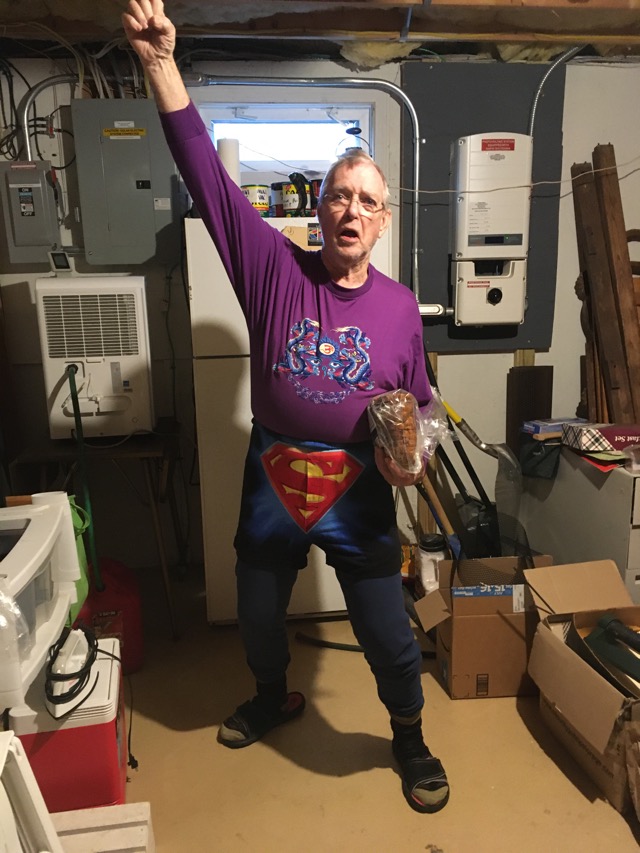 Yesterday I gave blood, picked up trash and dropped off books for the Falmouth Library to sell. We made pies; Ron got to flute one.