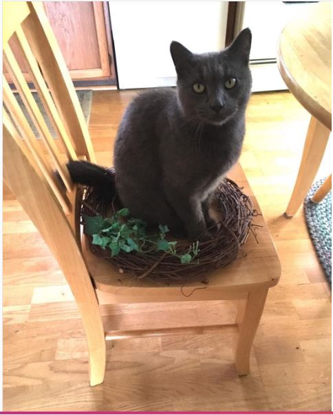I inadvertently left a wreath on Smokey’s chair, but it didn’t seem to bother him much.