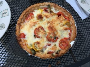 Ron made salad, I made tomato pie for supper. Elegant combination, enhanced by the new oils from Gustare.