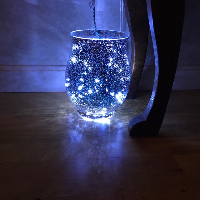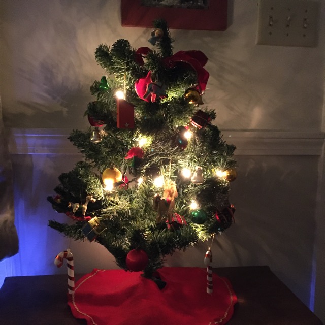 I added a string of lights to the vase that Cindy gave us and put up the tiny tree.