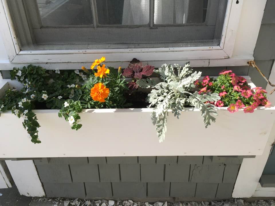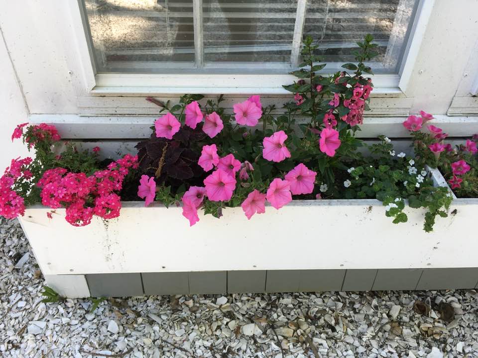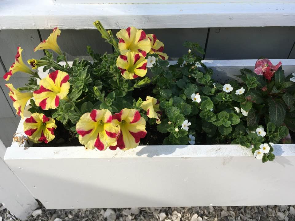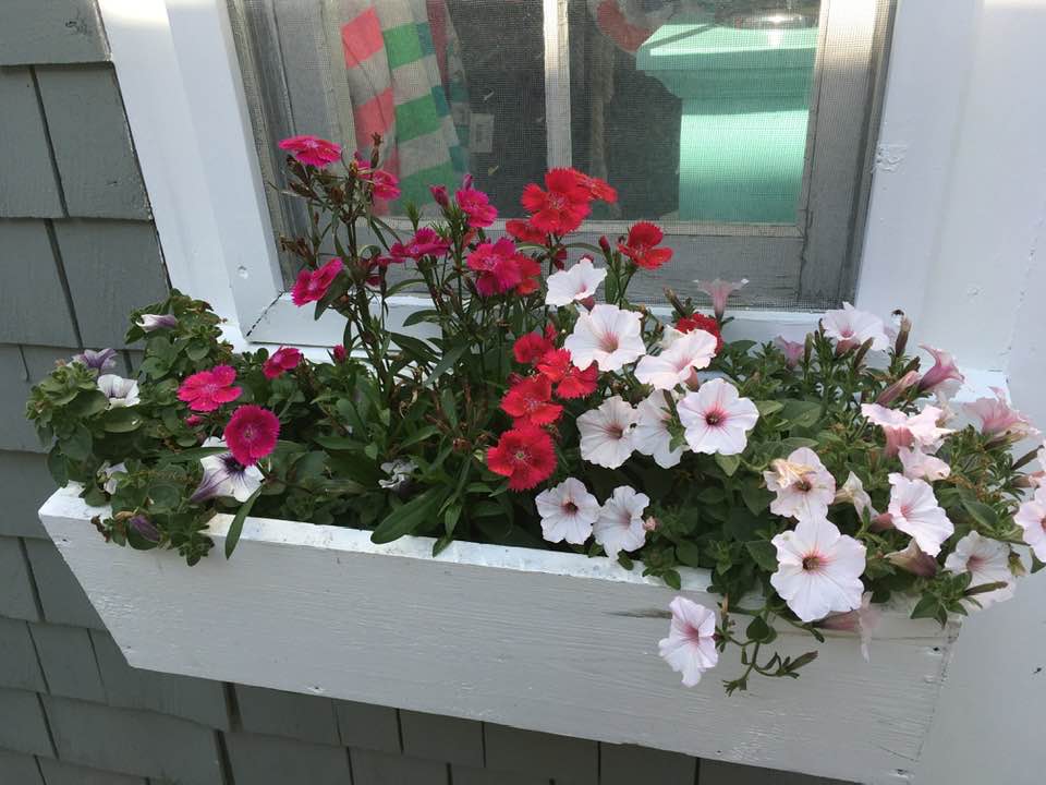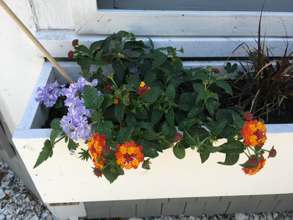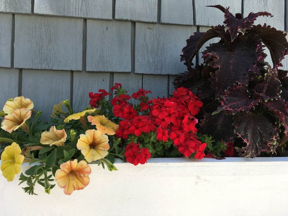 Late yesterday afternoon, after a walk and while I took flowerbox photos, Ron left his cellphone in the men’s room at Popponessett Marketplace and, remarkably, it was still there when he went back for it at 8:30 pm.