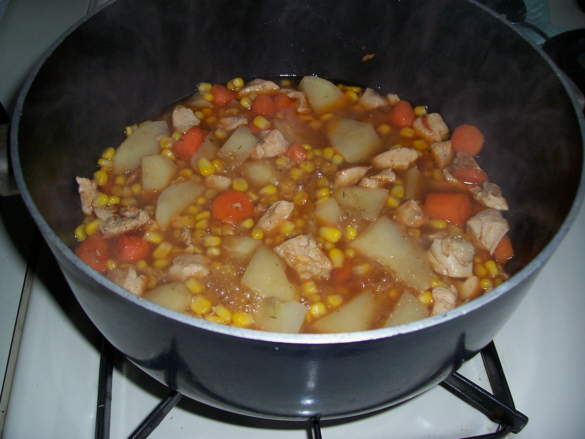 Bring everything to a boil. Simmer until potatoes are done.