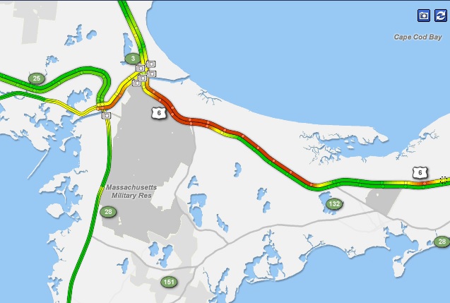 Sunburn, Traffic Posted on July 6, 2013 by thecapeblog Got a sunburn on my back. Feeling lucky that Ron is here to help me. It’s 93°.Westbound traffic looks to be backed up at least to Exit 5 on the Mid-Cape – and it’s only Saturday afternoon.